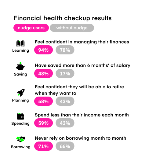 Using comprehensive mixed-method qualitative and quantitative research, impartial research partner Censuswide analyzed and compared nudge users with non-nudge users. The findings revealed: